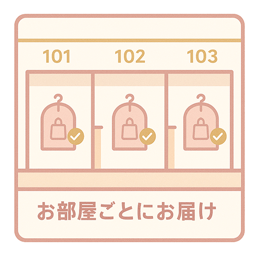 ホテル配送で、お部屋ごとに衣装を分けて届けてほしいという場合には、お部屋ごとに$5かかります。